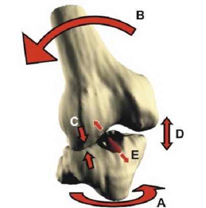 This can cause severe damage to the meniscii either wrenching them from their attachment ("peripheral detachment") or by splitting off a large "bucket handle" segment. This is different to the common degenerative tear where a meniscus has gradually become weaker and weaker to finally fail following a trivial injury ("the straw that broke the Camel's back").